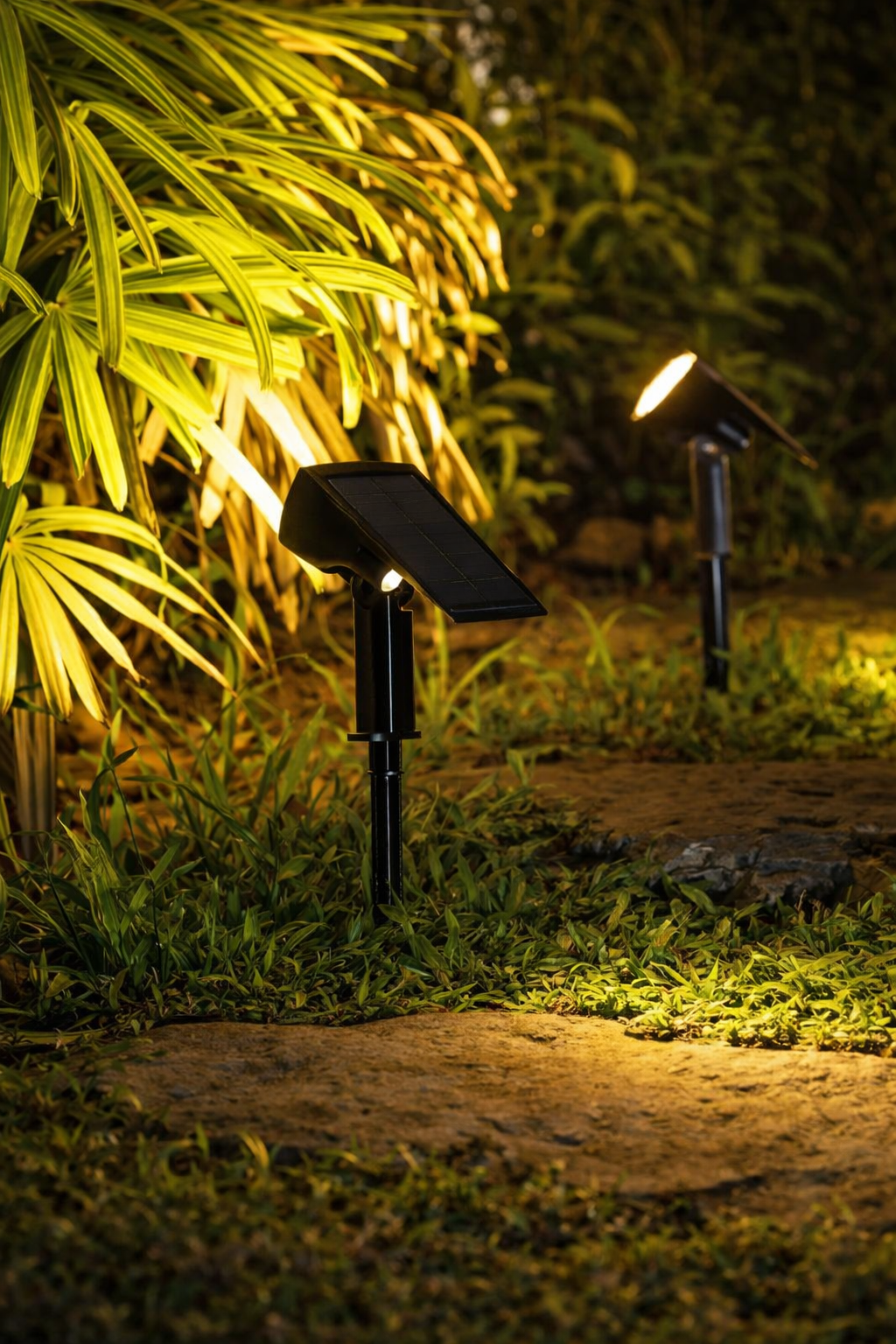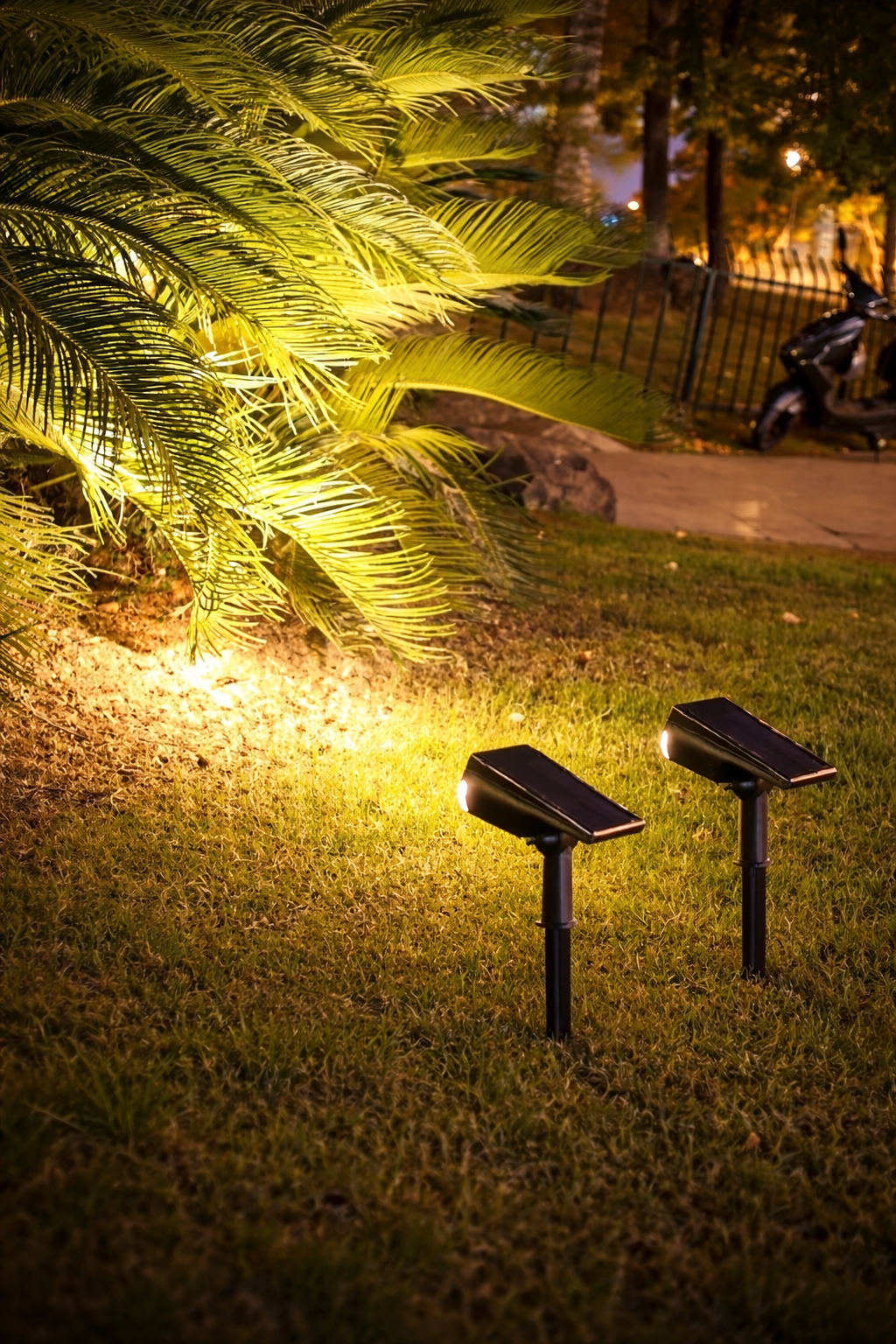 Foco solar con estaca, luz cálida, resistentes al agua, 7LED,