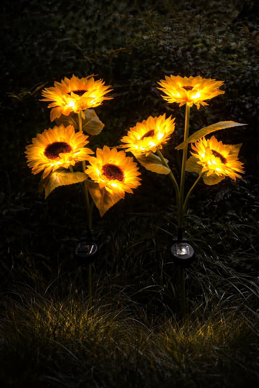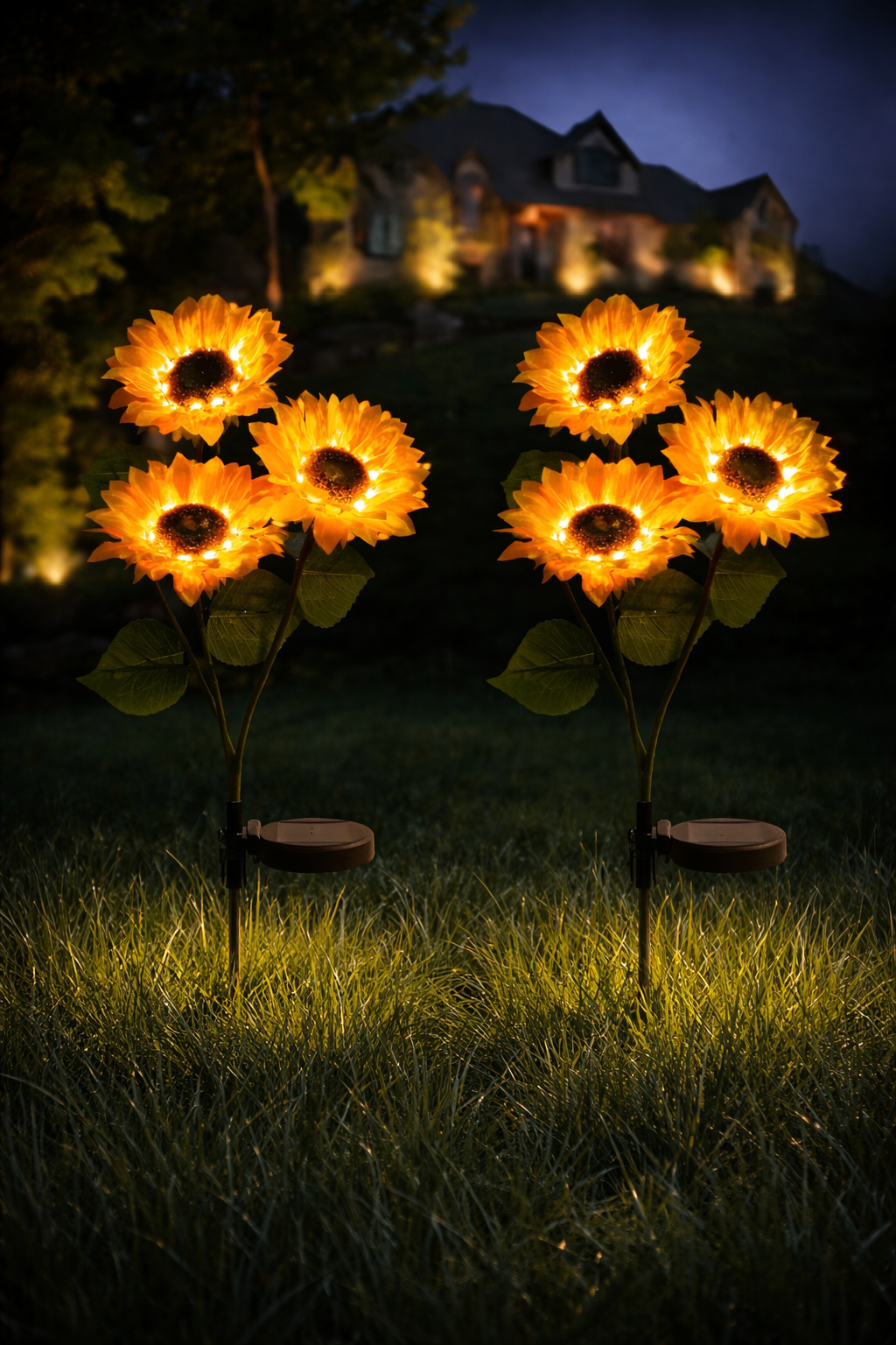 Pack de 3 girasoles en una estaca, luz cálida, resistente al agua.