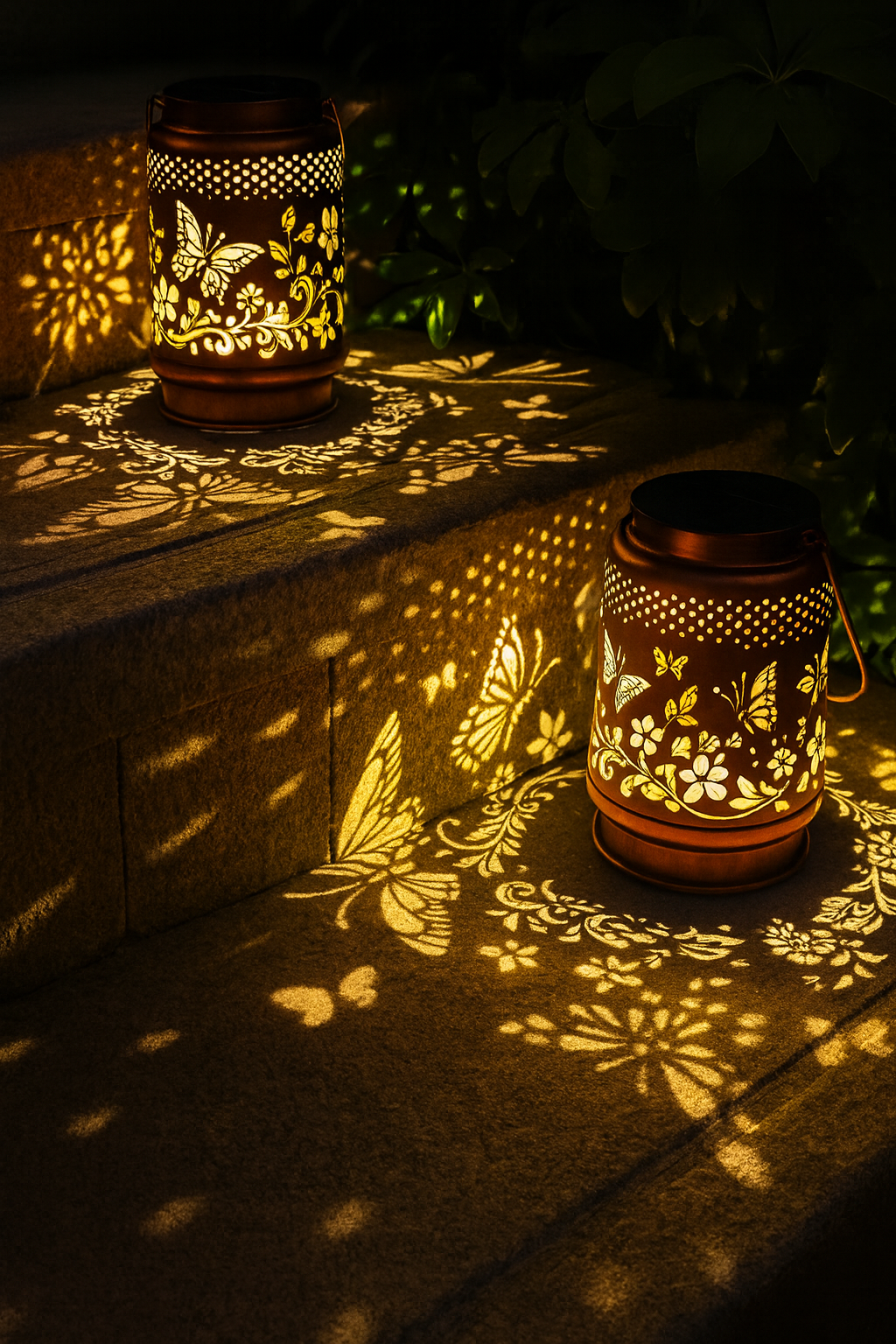 Farol solar, luz cálida, resistente al agua, 30x11 cms