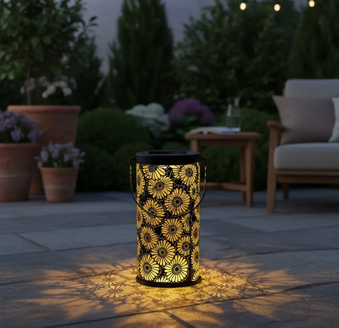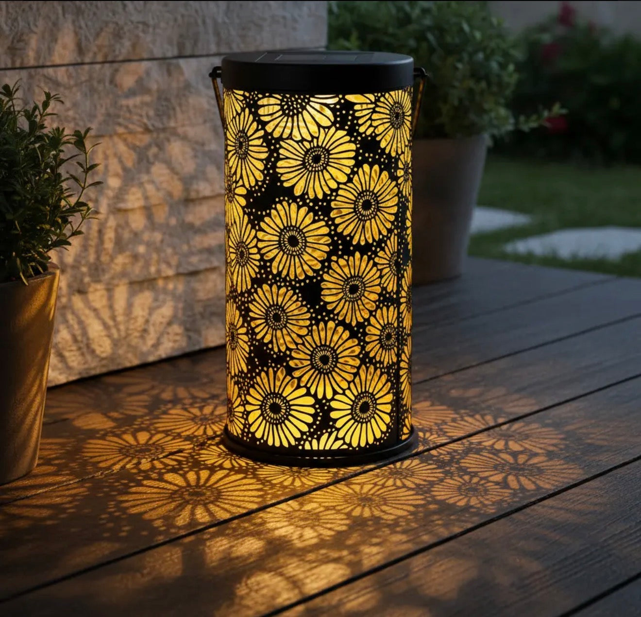 Farol solar, luz cálida, resistente al agua.