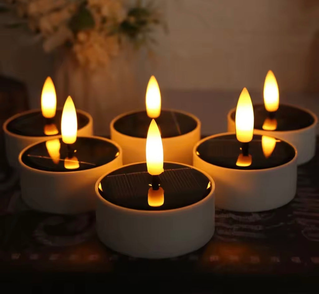 Velas solares, luz cálida, se venden por unidad, solares. 5.5x5.8 cms, se venden por unidad.