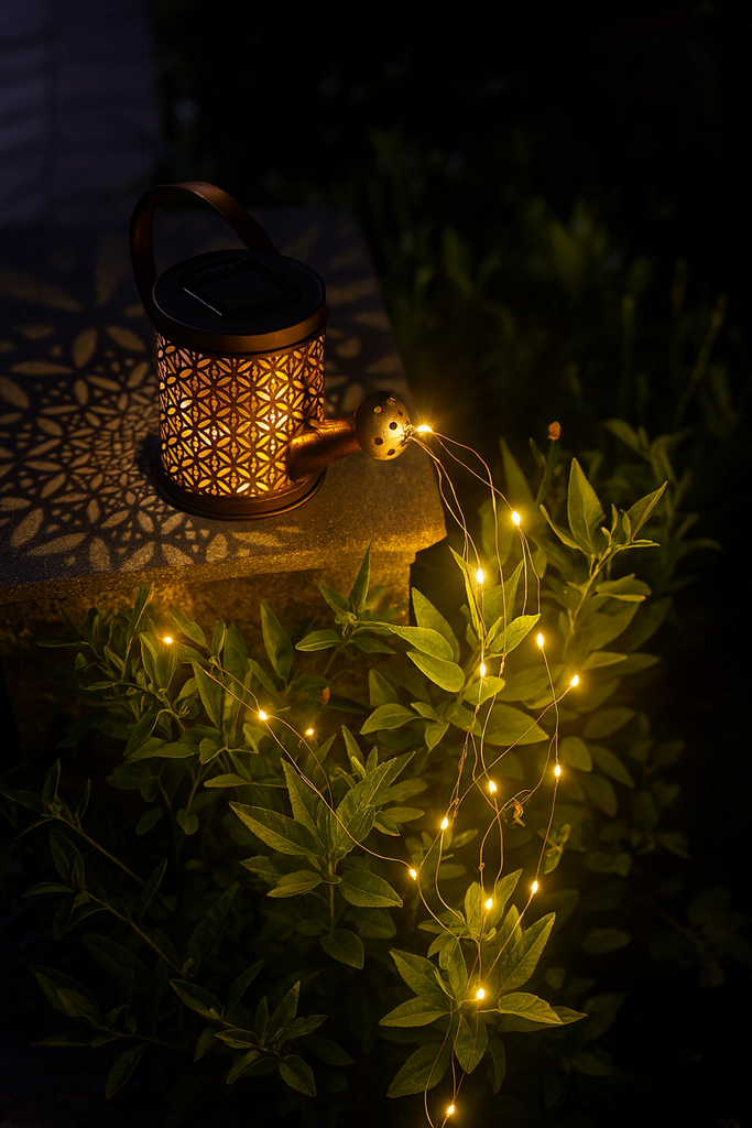 Increíble Jardinera solar, luz cálida, resistentes agua, material de metal, la luz es intermitente y refleja la caída del agua, 82 cms de alto x 19 cms de Ancho.