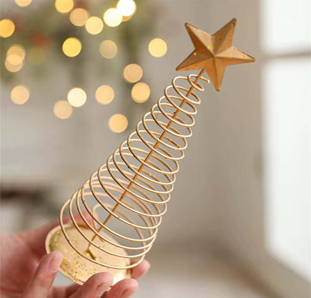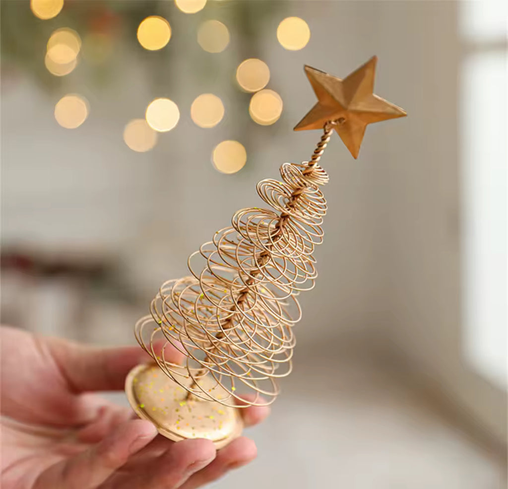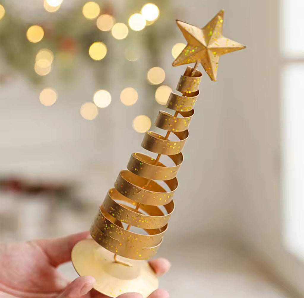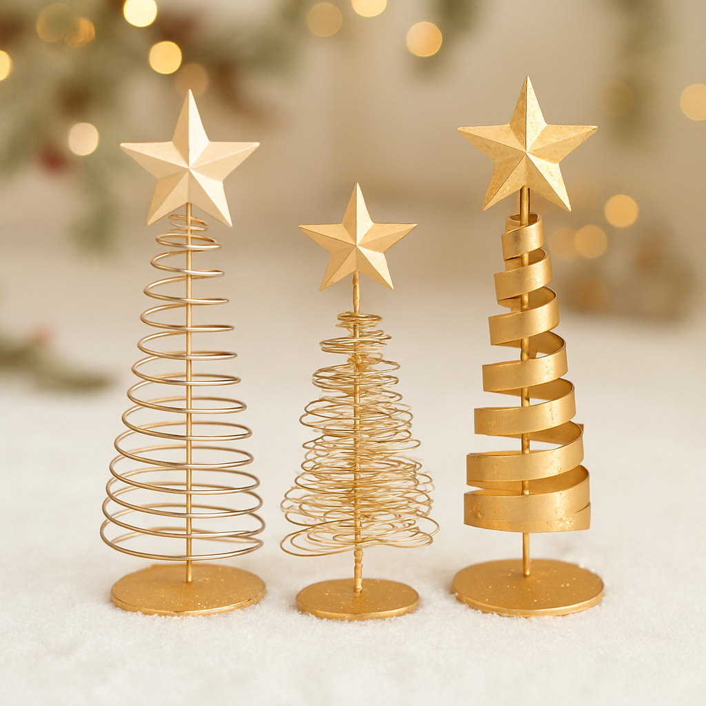 Árbol de Navidad metálico, en 3 versiones, 20 y 16 cms de alto. Se venden por unidad.