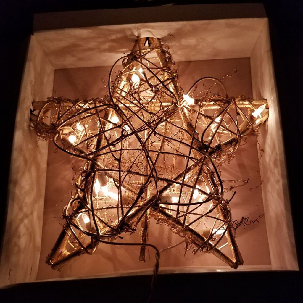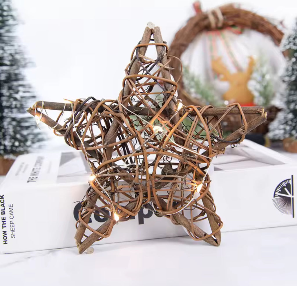Estrella de ratan 25x25 cms, incluye unas luces led de 2 metros, luz cálida.