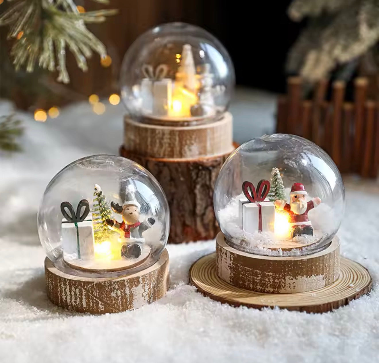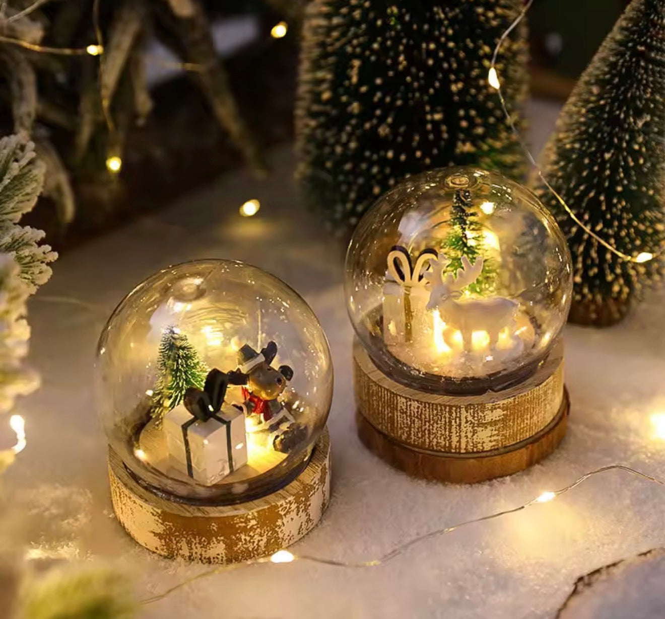 Mini cúpula de Navidad LED, luz cálida, vidrio.